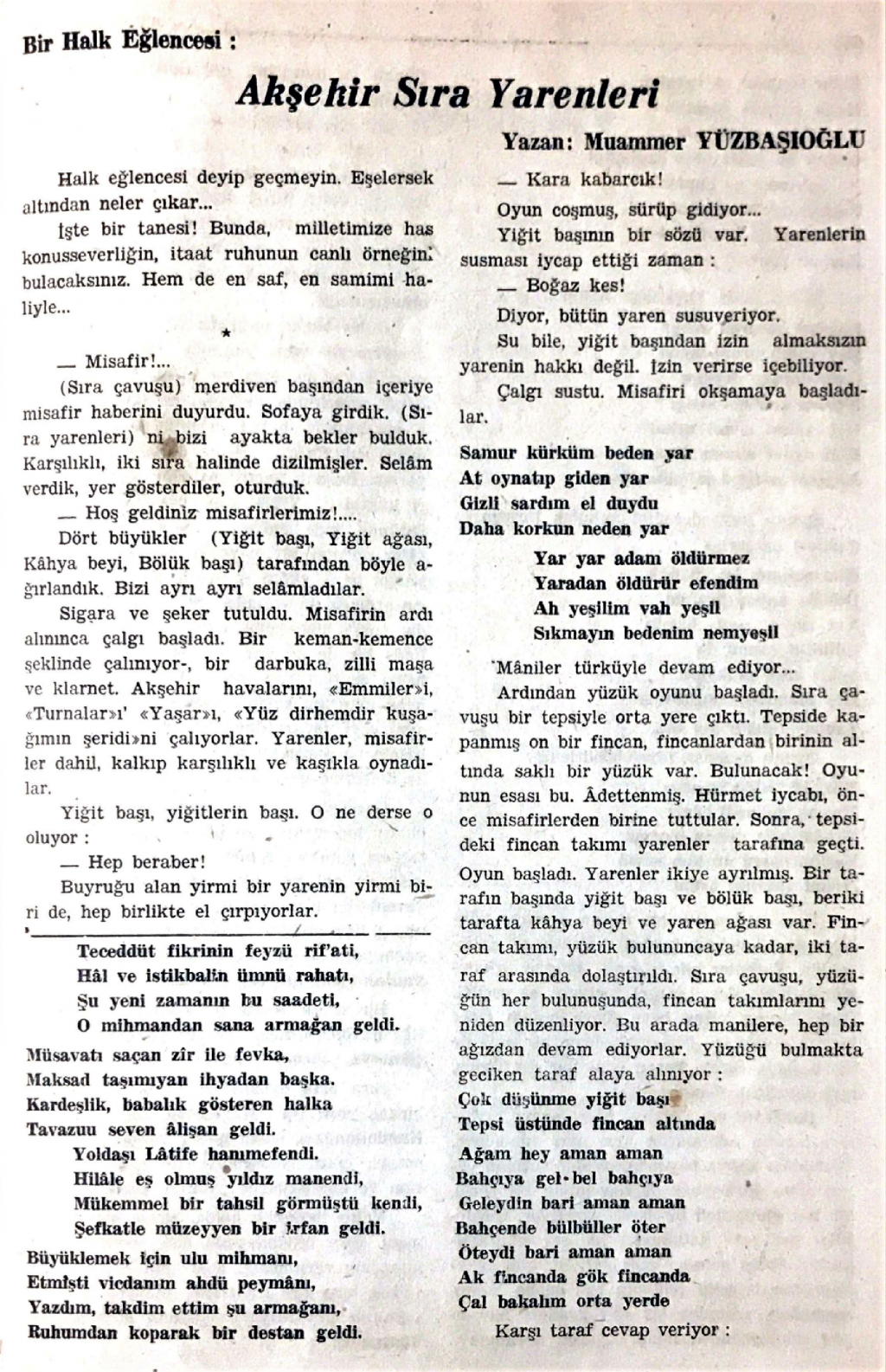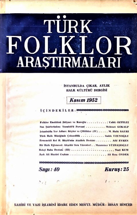Muammer Yüzbaşıoğlu                                           Türk Folklor Araştırmaları Dergisi Kasım 1952, Sayı 40