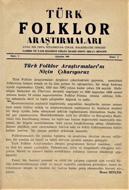 Türk Folklor Araştırmaları, Ağustos 1949 ile Ocak 1980 arası dönemde çıkarılan aylık halkbilim dergisi. Ocak 1951 tarihinde çıkarılan 18. sayıya dek İhsan Hınçer önderliğinde çıkarılan dergi bu tarihten itibaren Hınçer’in başkanlığını yaptığı Türk Halk Bilgisi Derneği’nin yayın organı haline getirilmiş ve toplam 366 sayı yayımlanmıştır.